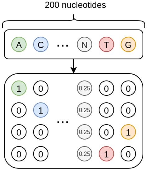 All models use Nadam optimizer [50], with the learning parameters suggested by the authors themselves: learning rate 0.002 , decay 0.004 and the gradient and momentum coefficients are β 1 = 0.9 and β 2 = 0.999 respectively. The CAE models must reconstruct the input sequences of length N, and their output is therefore structured like the input sequence (i.e., N × 4 nodes, four nodes for each one-hot-encoded nucleotide of the sequence, see Section 4.1). The output of the CNN is instead composed of four nodes representing only the one-hot-encoding of the missing nucleotide at the center of the input sequence. For this reason, while the input of both models is the same nucleotide sequences containing gaps, the ground truth labels used during training are different. For the CAE models, we compute the loss by using the input sequence without gaps, while the loss of CNNs only considers the prediction of the central gap.