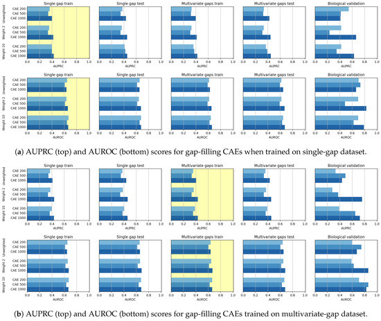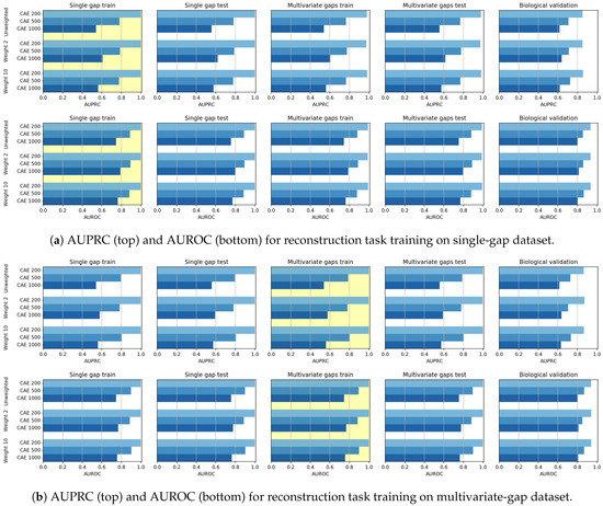 Table 7. CAE models mean performance on Gap-filling task. Though Adenine and Thymine seem having a much lower accuracy (and therefore lower AUROC), they have an higher AUPRC.