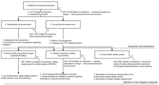 Preliminary risk analysis is based on an assessment of potential hazards. Potential risks (the risk means a hazard containing a quantitative assessment of the frequency and severity of consequences) can be divided into different groups which are related to operational and technical (functional) hazards. The general list of risks necessary for the analysis is provided in ISO 12100 [5]. The risks can be considered as hazards associated with the equipment itself, with its failures and external hazards associated with the actions of operators, and the loss of electricity and power supply.
