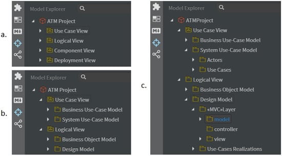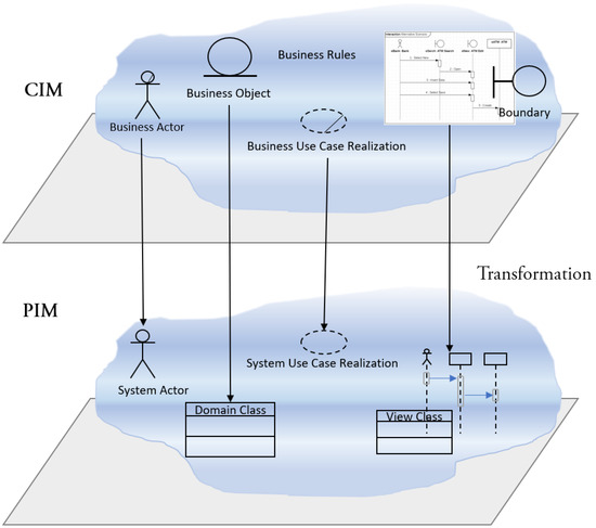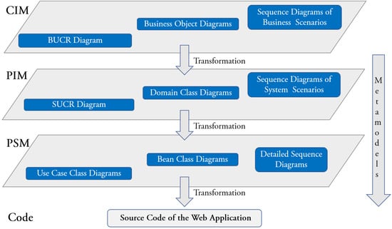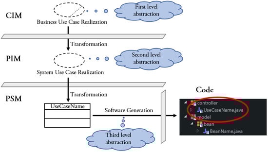 Paolone et al. [6,7] reshaped the point of view in Reference [3] in a novel use-case-driven methodology, within the general frame of reference of the Model-Driven Architecture (MDA). “MDA is an approach to software design, development and implementation by the OMG. MDA provides guidelines for structuring software specifications that are expressed as . MDA separates business and application logic from the underlying platform technology.” (Sentences taken from: https://www.omg.org/mda/) MDA enables model-driven software development which treats models as primary development artefacts. Model-Driven Development (MDD), Model-Driven Engineering (MDE), Model-Driven Software Development (MDSD), and MD* are terms used for referring to the existing approaches to model-driven development [8].