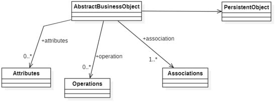 To link the business perspective to the system perspective, we have defined meta-models for the UML constructs class and . Figure 9 shows the main elements of the UML meta-model of the diagram of the Business Objects. Moving from the business perspective (CIM) to that of the software system, each Business Object becomes a Java Bean class that inherits from AbstractBusinessObject all the attributes and methods necessary to implement the standard behavior of a Business Object, including the management of its persistence in the database.