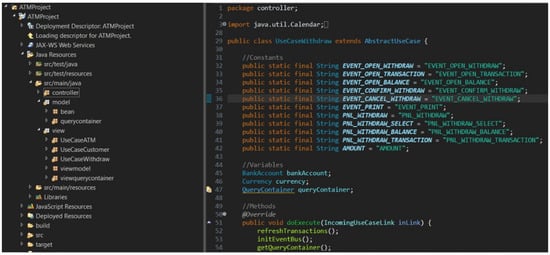 - Harrison, W.; Barton, C.; Raghavachari, M. Mapping UML designs to Java. In Proceedings of the 15th ACM SIGPLAN Conference on Object-Oriented Programming, Systems, Languages, and Applications, Minneapolis, MN, USA, 15–19 October 2000; pp. 178–187. [Google Scholar] [CrossRef]