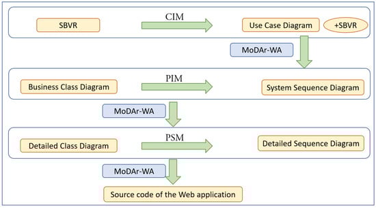 - Essebaa, I.; Chantit, S.; Ramdani, M. MoDAr-WA: Tool Support to Automate an MDA Approach for MVCWeb Application. Computers 2019, 8, 89. [Google Scholar] [CrossRef]