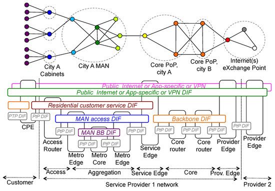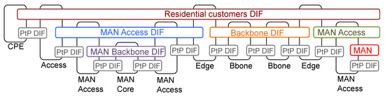 - Thompson, P.; Davies, N. Towards a RINA-based architecture for performance management of large-scale distributed systems. Computers 2020, 9, 53. [Google Scholar] [CrossRef]