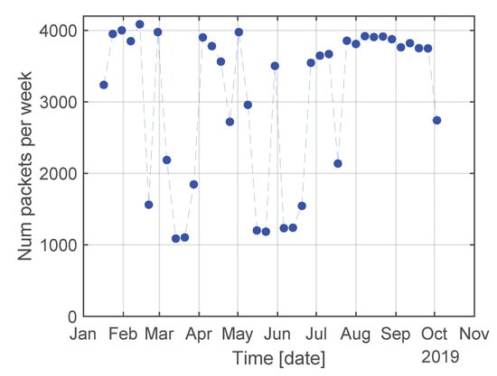 Figure 2 plots the number of received packets, week by week, in the considered time period.