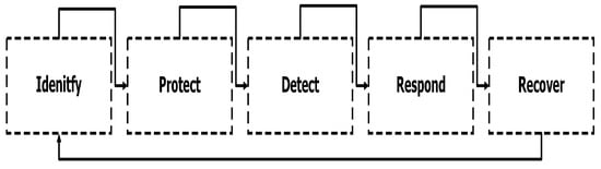 According to the NIST framework [], the lifecycle of cyberthreat mitigation strategies consists of five phases: identify, protect, detect, respond, and recover (see Figure 2). Each of these phases plays a vital role in sustainable cybersecurity.
