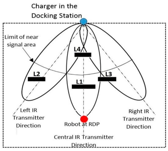 - First, a new navigation algorithm, based on IR sensors for mobile robots, is created and named the novel IR navigation algorithm (NIRNA). This algorithm facilitates the robot’s navigation to dock to the charger in the docking station.