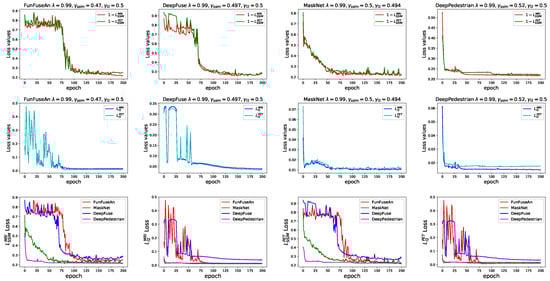 The loss convergence curves of all the evaluated unsupervised learning-based fusion networks are shown in Figure 3. Each of the fusion networks was trained for 200 epochs, the batch size was fixed as 2 and the Adam optimizer was used as the optimization function during the backpropagation step with a learning rate of 2 × 10−3.