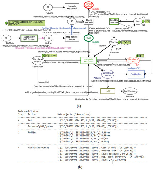 - Poolsawasdi, W.; Dechsupa, C. Formal Verification of the Accounting Information Interfaces Using Colored Petri Net. In Proceedings of the 2019 5th International Conference on Engineering, Applied Sciences and Technology (ICEAST), Luang Prabang, Laos, 2–5 July 2019; pp. 362–365. [Google Scholar]