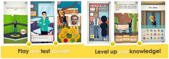 The LoEL app implements innovative gamified educational practices that include specific activities based on the digital habits of young people. This combination of digital content in the form of a Serious Game available through a mobile platform is highly effective for the addressed target group, measured by their ability to translate the acquired competence in real tasks [16]. Serious Games, defined as games designed with a serious purpose [17], are immersive and motivating due to their embedded enjoyment and emotional gratification [18], and they build training environments that allow the acquisition of knowledge, experience, and professional skills through the simulation of different situations and contexts [19,20], which can be well adjusted to the LoEL target group [21]. Therefore, the app design followed a set of requirements: