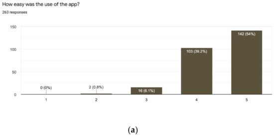As can be seen in Figure 5, the app was highly rated on usability and interaction (a 5-level Likert scale was used with 5 as the most positive), as can be seen in the next two graphs. In addition, 89.3% of the users also mentioned that it had been easy to find all the features of the app.