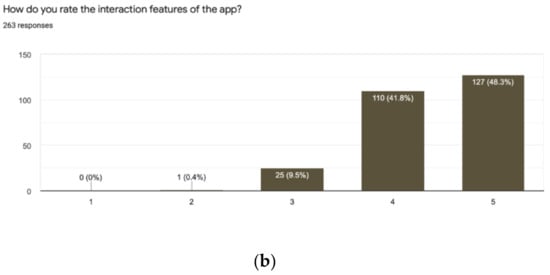 Evaluation of the easyness of use (a) and interaction (b) features of the app.