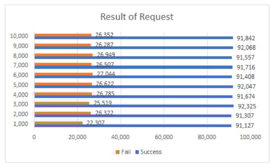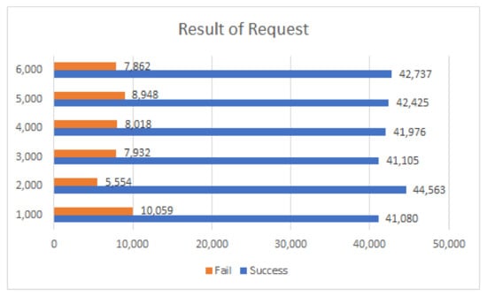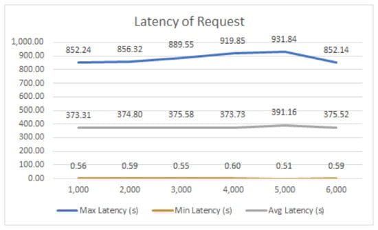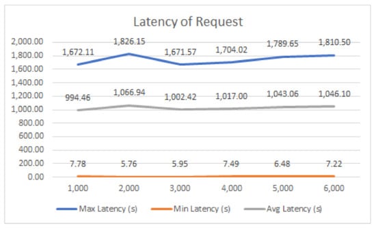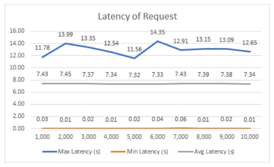 Figure 11 shows the latency of data update requests. In general, the latency is kept stable in 6 cases even when the bandwidth congestion occurs. It can be seen that the received request traffic and the resulting request execution do not reduce the processing capacity of smart contract data processing.
