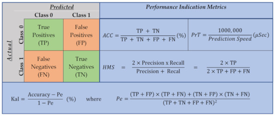The five performance indicators used in the evaluation of our proposed system. These are the standard evaluation metrics used in almost all machine-learning-based models to provide insights into the system performance.