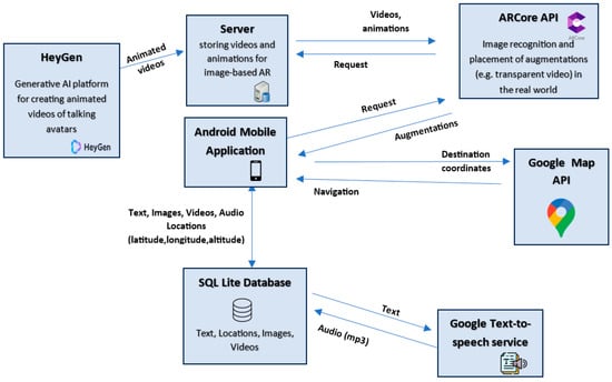 As mentioned in Section 2, storytelling is a powerful communication medium that has also proved to be efficient in AR location-based projects []. A certain procedure using generative AI online tools was followed to produce these virtual characters. To create such multimedia content in the past would require expertise and time. Today, these AI platforms can be used to create multimedia content quickly and easily. This work also contributes to the literature by presenting how such tools are utilized in the rapid development of content for AR applications.
