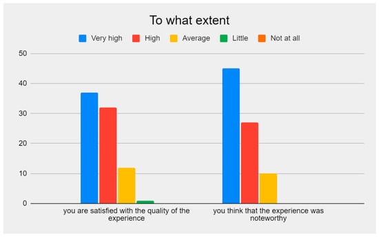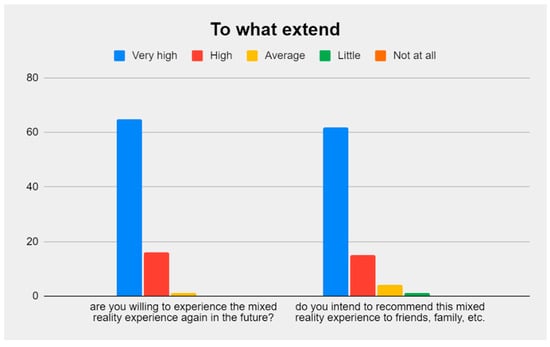 Moreover, the educational dimension of the experience had a significant and positive relationship with visitors’ satisfaction with the experience (r = 0.446, sig. = 0.000), future intentions with the mixed reality experience (r = 0.409, sig. = 0.000), and future revisit intentions (p = 0.593, sig. = 0.026).