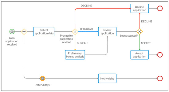 Finally, the Load accepted? gateway uses such color to determine the final application outcome: