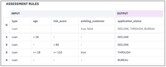 Decision table for “Assessment rules” business knowledge model.