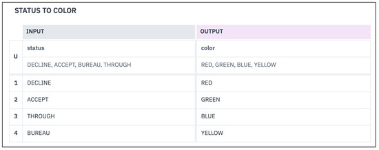 Decision table for “Status to color” business knowledge model.