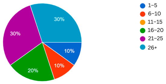 The participants in this ARECG evaluation were ten in-service English language teachers working in K-12 education in Thessaloniki, Greece. All of the participants were female, with the majority of them being considered as middle aged, something that perfectly aligns with the structure of the present educational system and the fact that most of them work at the primary level of education (Figure 6).