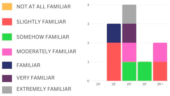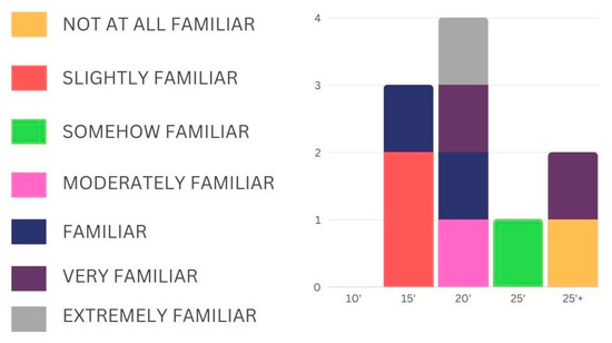 The heterogeneity of the participants’ familiarity levels both with AR and escape games is reflected in the time for game completion, which ranged from 15′ to 25′+ (Figure 10 and Figure 11).