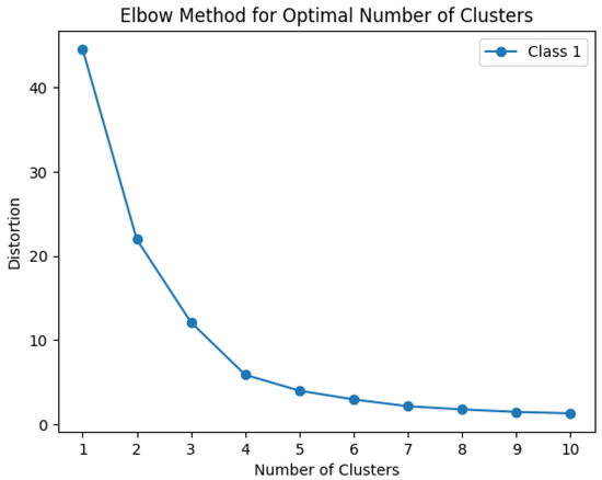 We determined the optimal number of clusters for each activity class with the help of the elbow method, as presented in Figure 2. By observing the within-cluster sum of squares (WCSS) results against the number of clusters, we were able to find out at what point the WCSS decrease rate declines considerably, thereby signaling the best number of clusters to form the Cluster Size (CS).