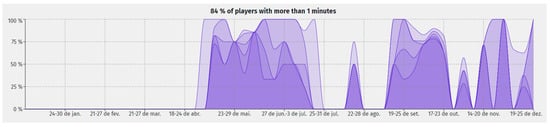 Also, 84% of the players spent more than 1 min in the game, which shows that the number of “false testers” (that is, testers that just entered out of curiosity and immediately left) was quite reduced (Figure 5).