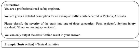 Prompt engineering is a technique for crafting and refining input prompts for LLMs to enhance their performance on specific tasks. It is akin to “asking the right question (prompt) to get the desired answer (response)”. For traffic safety analysis, carefully designed prompts can significantly enhance LLMs’ ability to analyze complex scenarios and provide meaningful insights. Specifically, in the context of crash severity inference, one critical category is ‘Fatal accidents’. However, LLMs often exhibit a tendency to avoid assigning this label to relevant cases. This behavior stems from their alignment training, which generally encourages them to avoid discussing unpleasant subject or potentially unsafe topics [23,24]. Such design constraints present a challenge in accurately inferring severe outcomes for traffic incidents. To address this issue, we found it necessary to rephrase the original ’Fatal accidents’ label using alternative terms. This “soft” approach allows us to maintain inference accuracy while respecting LLMs’ aligned parameters. The specific modifications and their impacts on inference performance are discussed in detail in the Section 4.
