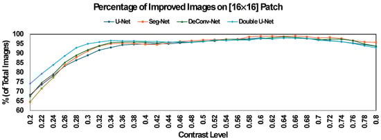 The percentage of improved images on [16 × 16] patch between four CNNs and different contrast levels.