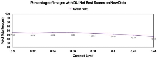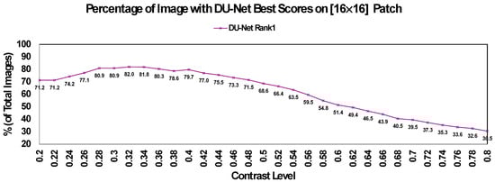 The percentage of images where the DU-Net scores best on [16 × 16] patch between different contrast levels.