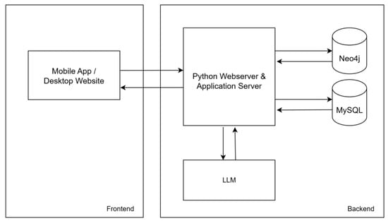 DietQA is implemented as a Client–Server architecture composed of modular components as shown in Figure 2. The design separates the backend—which handles natural language processing, KG querying, and LLM-based answer generation—from the frontend—which provides the user-facing application interface.