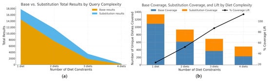 - KG-QA for Multi-Diet Reasoning and Substitution: Formulates diet-aware recipe search as knowledge-graph question answering with full Boolean constraints across ingredients, nutrients and diet tags, plus diet-aware ingredient substitution to recover feasible results even if direct matches fail; the study quantifies coverage and substitution lift across increasing diet complexity.