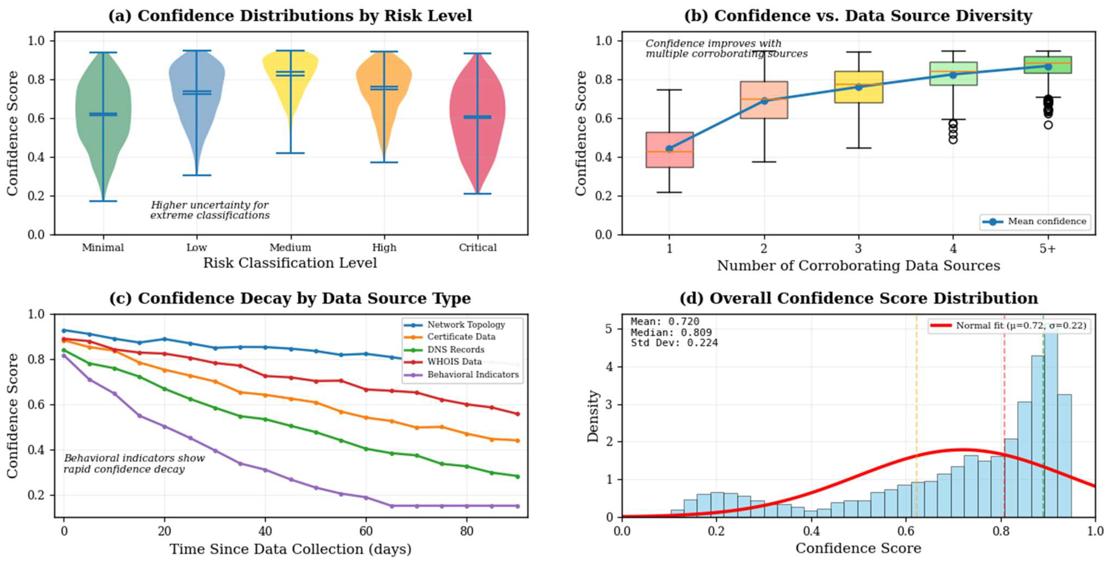 Despite strong performance metrics, several limitations warrant consideration. The framework’s effectiveness depends fundamentally on OSINT data quality, which varies significantly across sources. WHOIS data showed 11.8% missing values in our dataset, consistent with the data quality challenges identified by Szymoniak et al. [