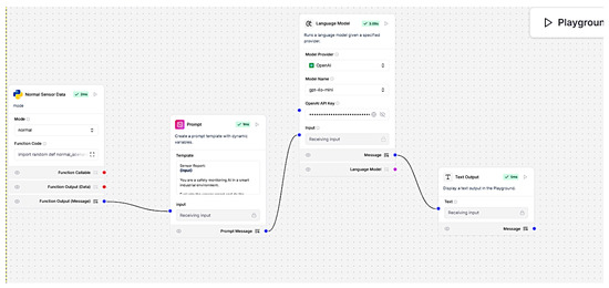 OpenAI’s GPT 4o mini was used in both CrewAI and LangFlow frameworks. Agents interacted with GAN detectors and OpenAI’s Large Language Model for analyzing the received data in order to check for anomalies and detecting possible threats. Once anomalies were detected, sensor data was passed to the LLM with the following prompt: Sensor data: data. You are a safety monitoring AI in a smart industrial environment. Evaluate the sensor report and do the following: