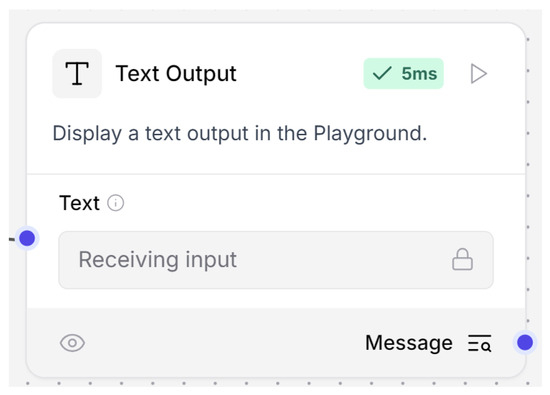 LangFlow was initially created to facilitate the development of agents using drag and drop GUI and to allow rapid prototyping. Agent logic used in CrewAI was reintroduced in LangFlow for consistency across experiments. Langflow is a specialized No Code platform tailored for designing and executing conversational AI workflows. Langflow provides a scenario editor that enables users to design chatbot interactions step by step. This helps build flows where the conversation logic is clearly mapped out through visual components [63]. The platform is highly compatible with LangChain components, which are libraries that simplify connecting various AI modules in a sequence, ensuring that the designed workflows can easily integrate different tools and models. It is designed to empower users who may not have technical expertise by offering a drag and drop visual interface, simplifying the creation of complex workflows and thereby reducing the barrier to entry for AI application development