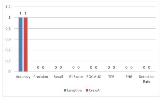 We have set seven evaluation metrics, which are common in evaluating AI systems capability in detecting cyber threats, so we could comparatively analyze our frameworks. The metrics were accuracy, precision, recall, F1 score, detection rate, force positive/negative rate and AUC-ROC score. Accuracy measures the overall degree of correctness for the model and is the proportion of true predictions, true positives and true negatives, over the entire data [64]. But for unbalanced datasets, Precision and Recall give better indications. Precision is the number of times in which the correct threats were identified [65], while Recall (true positive rate), indicates the correct number of actual attacks that were identified [66]. F1 Score is the mean of Precision and Recall and it also provides a fair measure when an absence of both false positives and false negatives are essential [66]. False positive rate and false negative rate complement Recall by showing the rates of false alarms and missed attacks respectively [67]. Detection rate is basically aligned with Recall, but it explicitly indicates the proportion of successfully detected attacks. Lastly, AUC-ROC measures the model’s performance in discriminating attack and normal cases at different thresholds [68].
