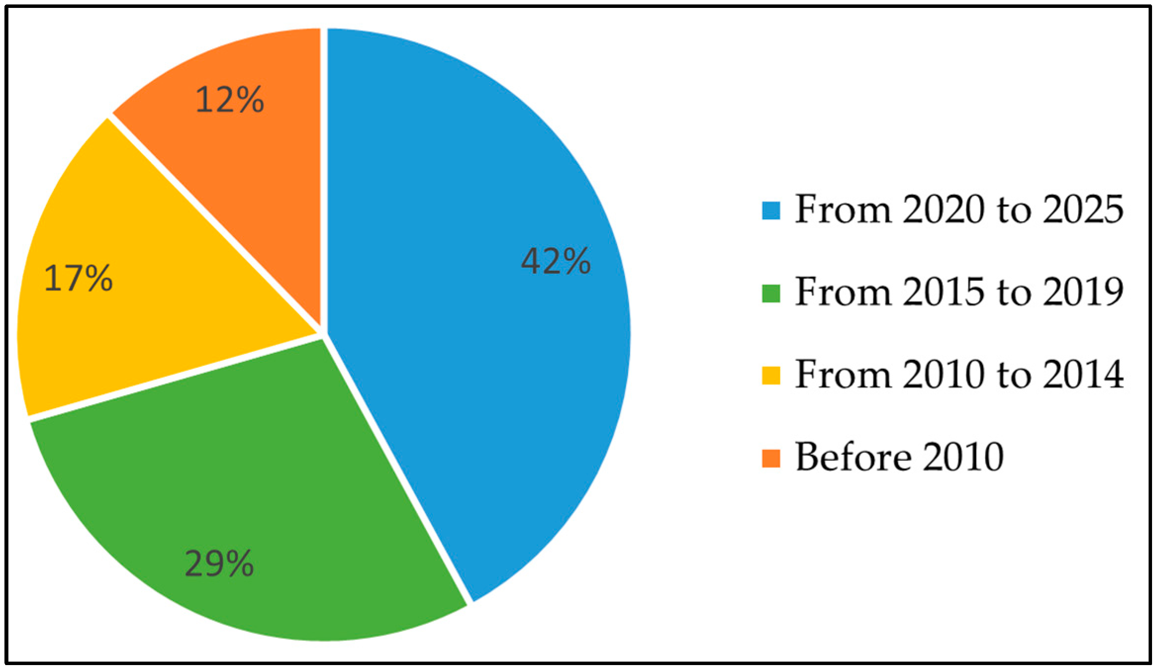 This comprehensive literature yielded over 300 references, that focused on recent and emerging studies in Arabic NLP. Over 60% of the studies reviewed in this paper were published within the past decade, reflecting the recent surge of research activity in Arabic NLP. Furthermore, the origins of research interest in this field can be traced to the early years of the 21st century, during which several foundational tools and preliminary techniques were developed. Publications from this period constitute approximately 17% of the total studies reviewed in this paper. Moreover, a limited number of earlier studies, published prior to 2000, addressed foundational issues and challenges associated with Arabic language processing. As illustrated in Figure 1, the distribution of references demonstrates a notable increase in Arabic NLP research output, particularly during the period from 2020 to 2025, reflecting the rapid expansion and growing academic interest in the field.