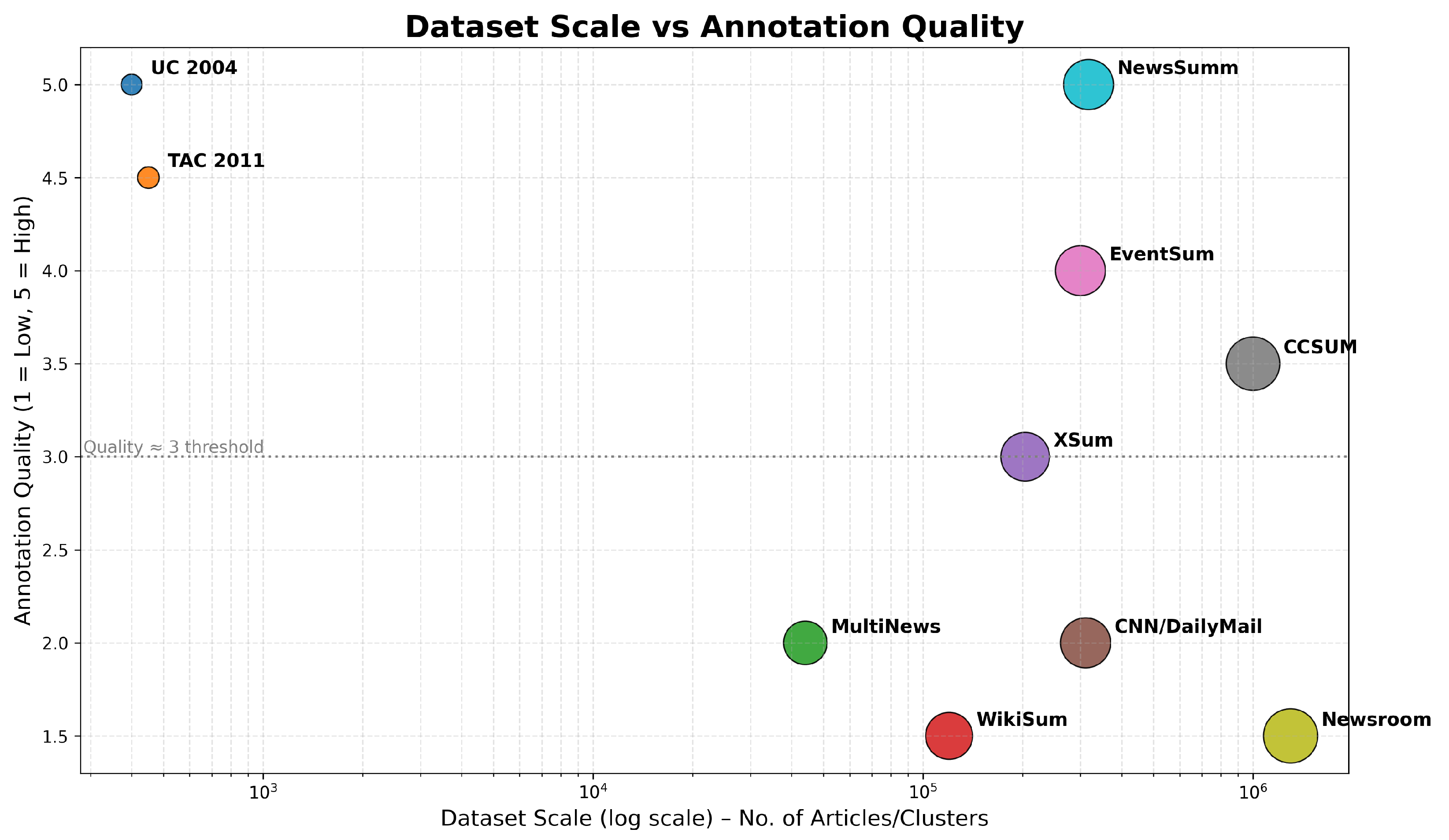 | CCSUM | 1 M clusters | Auto/Human | Yes | 2016–2021 | Many | Multiling. News | Open |