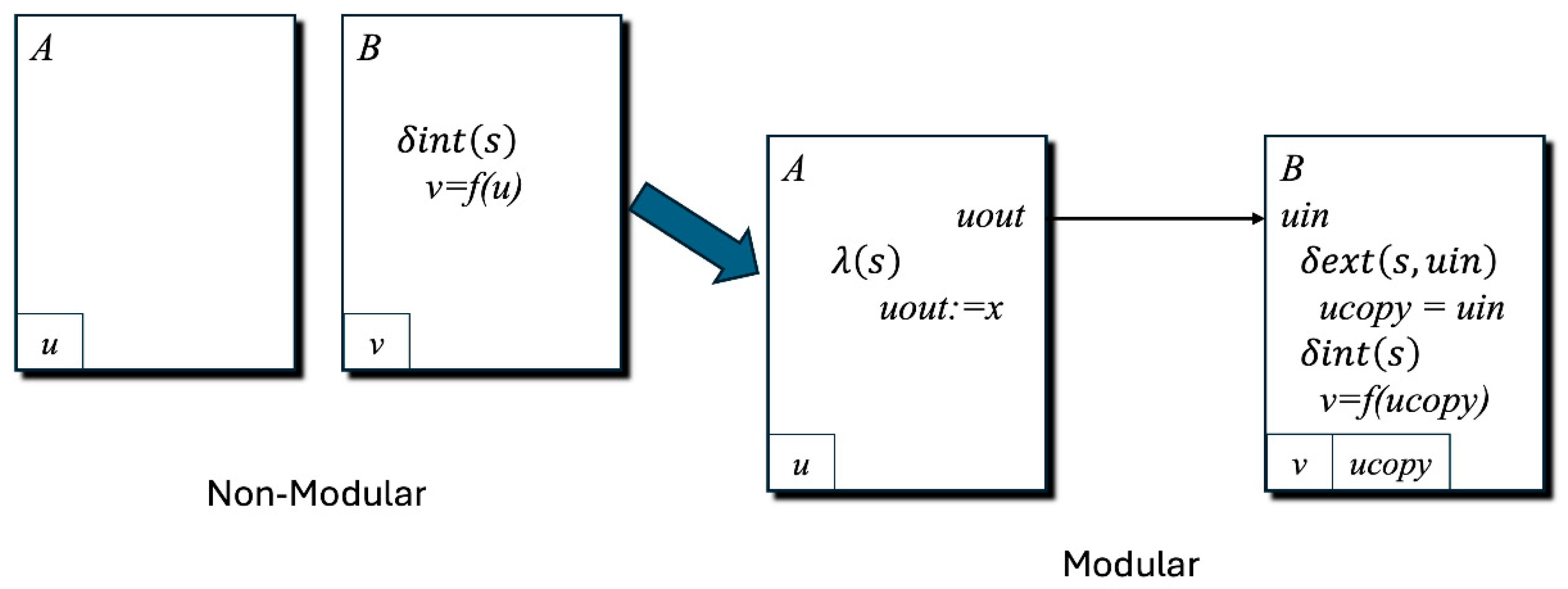 4.1. Transforming Non-Modular Multi-Component DEVS Models into Modular Form