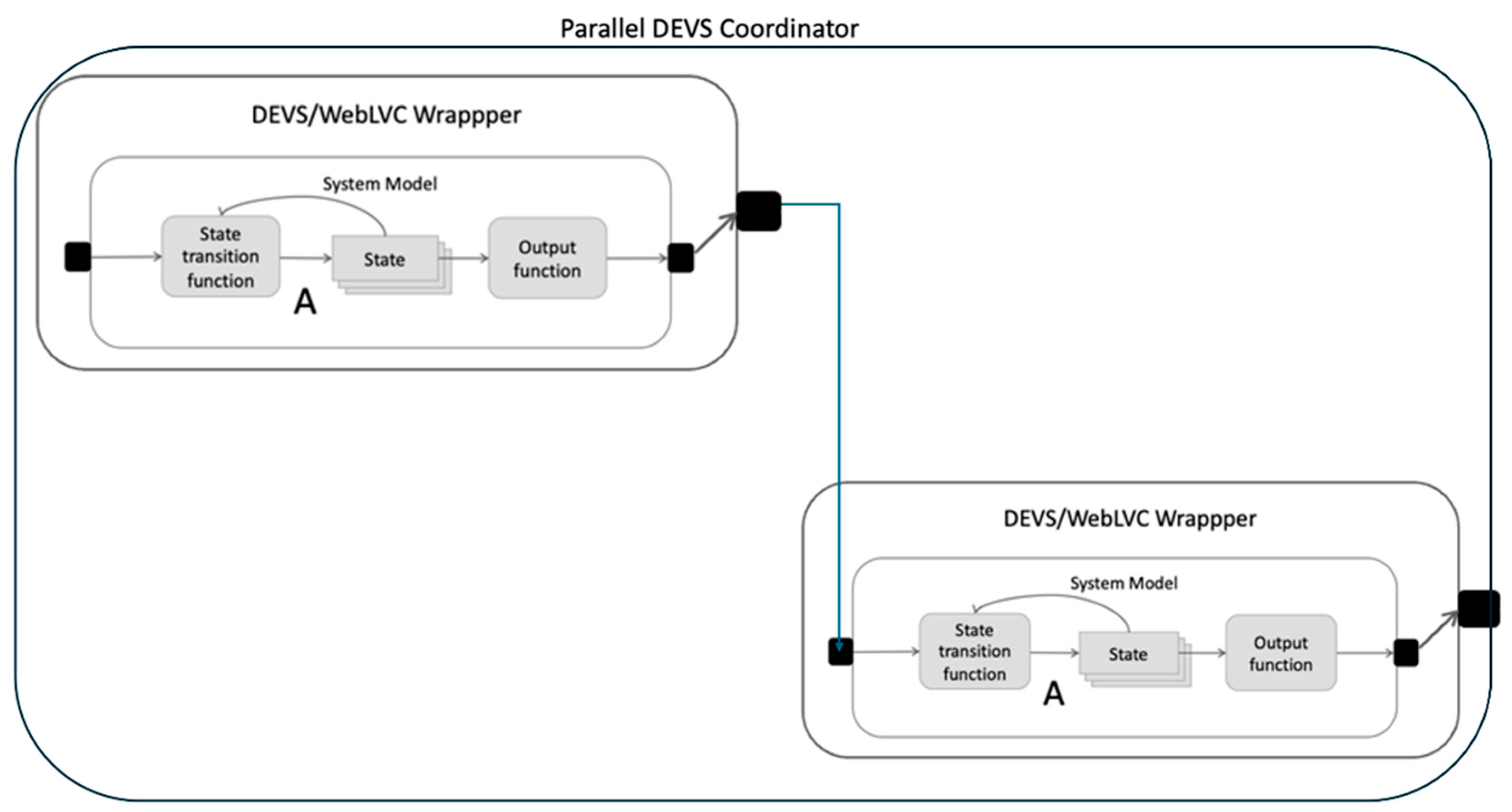 - The receiving components then process these inputs via their external transition functions at the same simulation time.