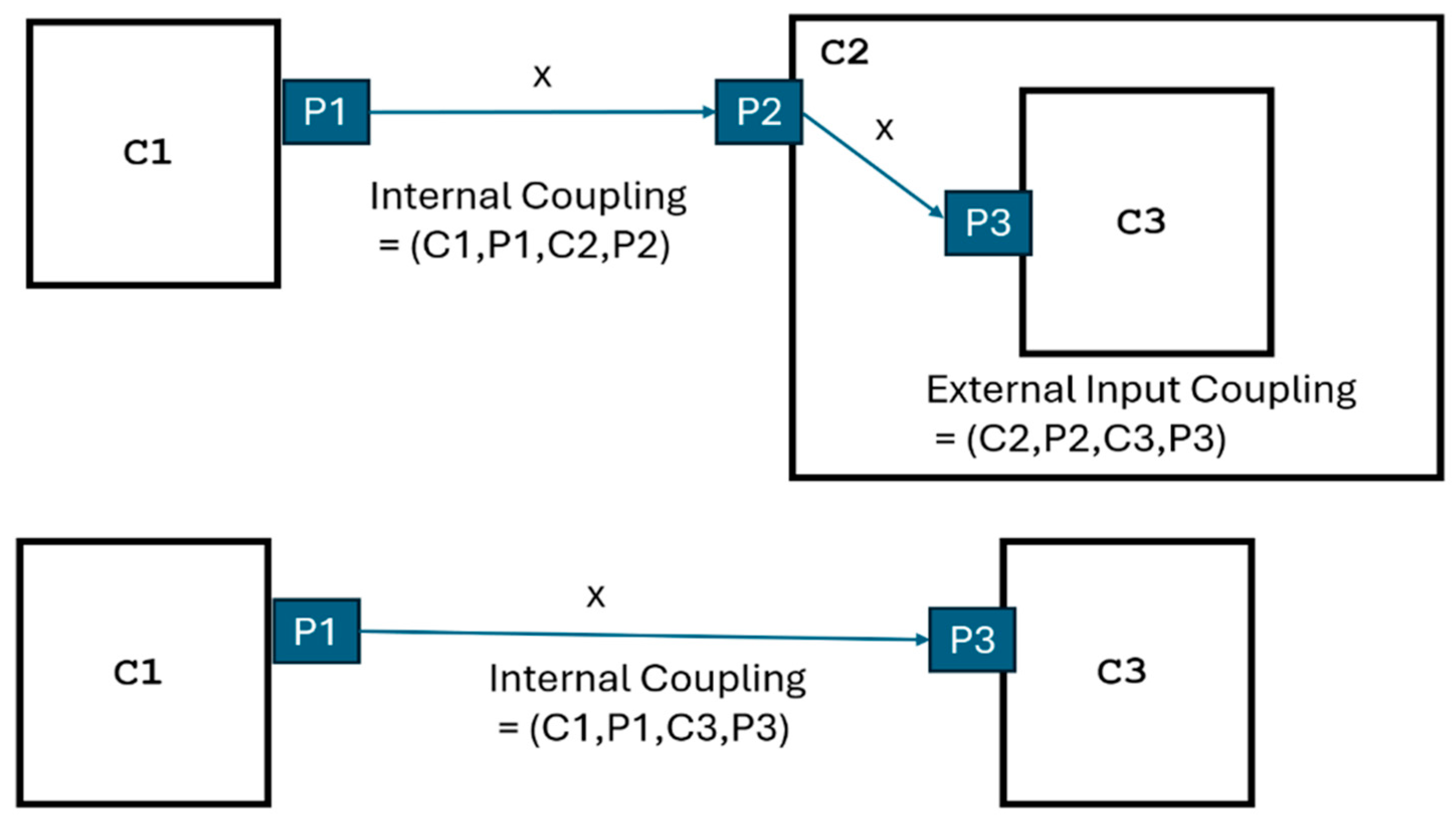 - External Output Coupling: Output of a component becomes output of the entire coupled model.
