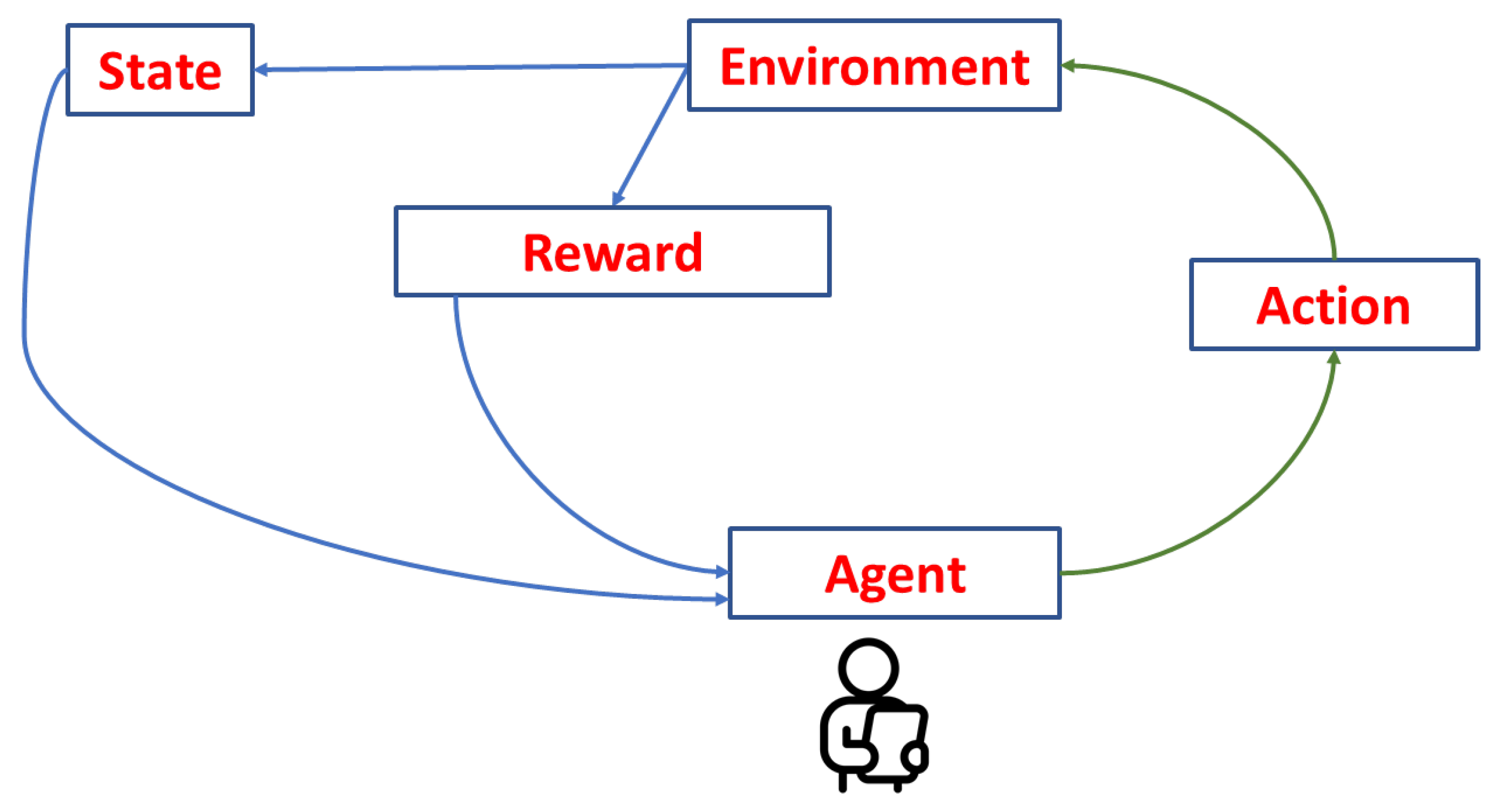 The Reward and a new set of input variables selected as a new State stimulate the agent, starting the learning cycle once again.