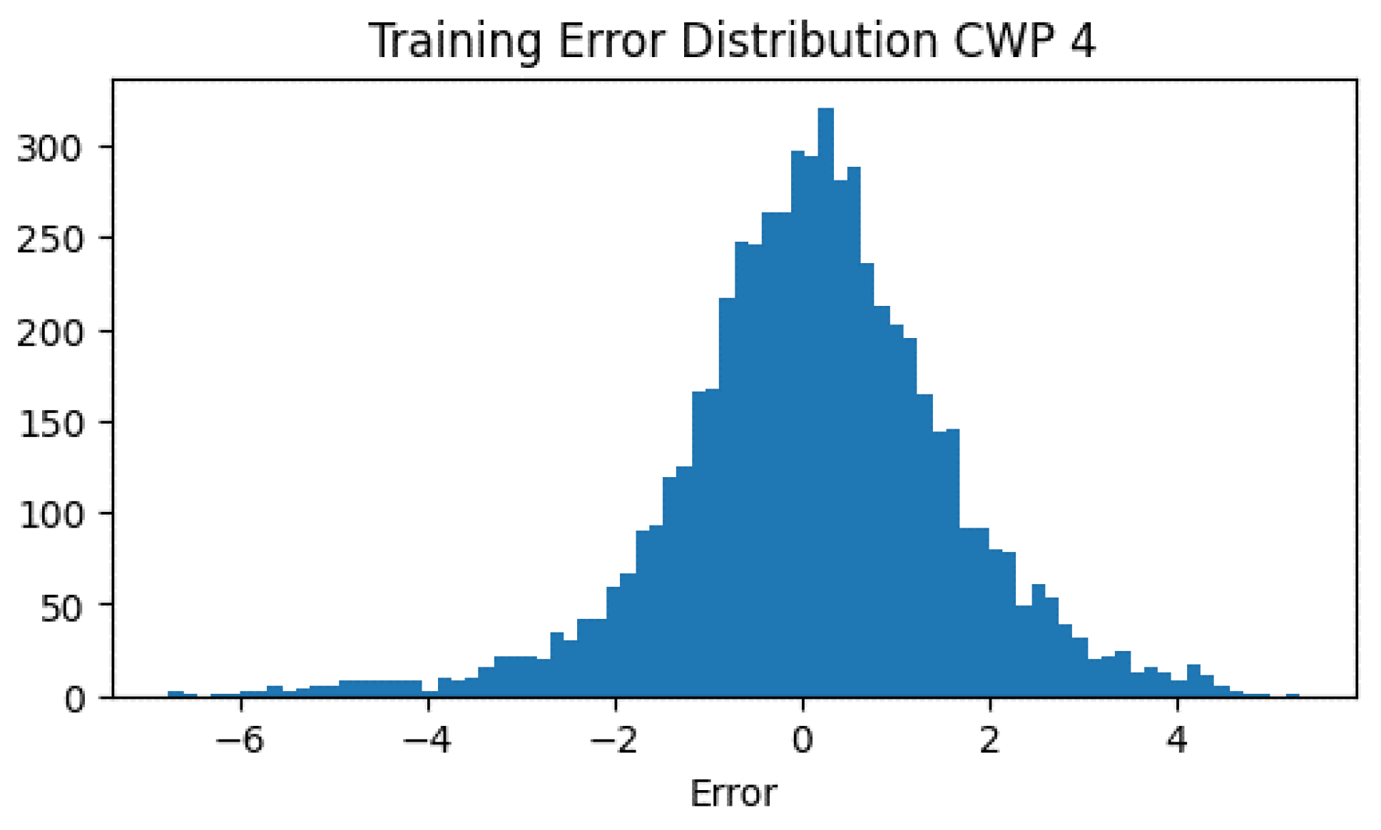 Figure 6 presents a histogram of the training error distribution that is centered around 0, a fact that agrees with the close approximation between the real and predicted values observed in