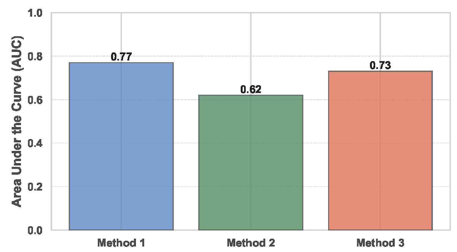 32]. The AUC value represents the probability that the classifier will rank a randomly chosen positive instance higher than a randomly chosen negative instance. For instance, an AUC of