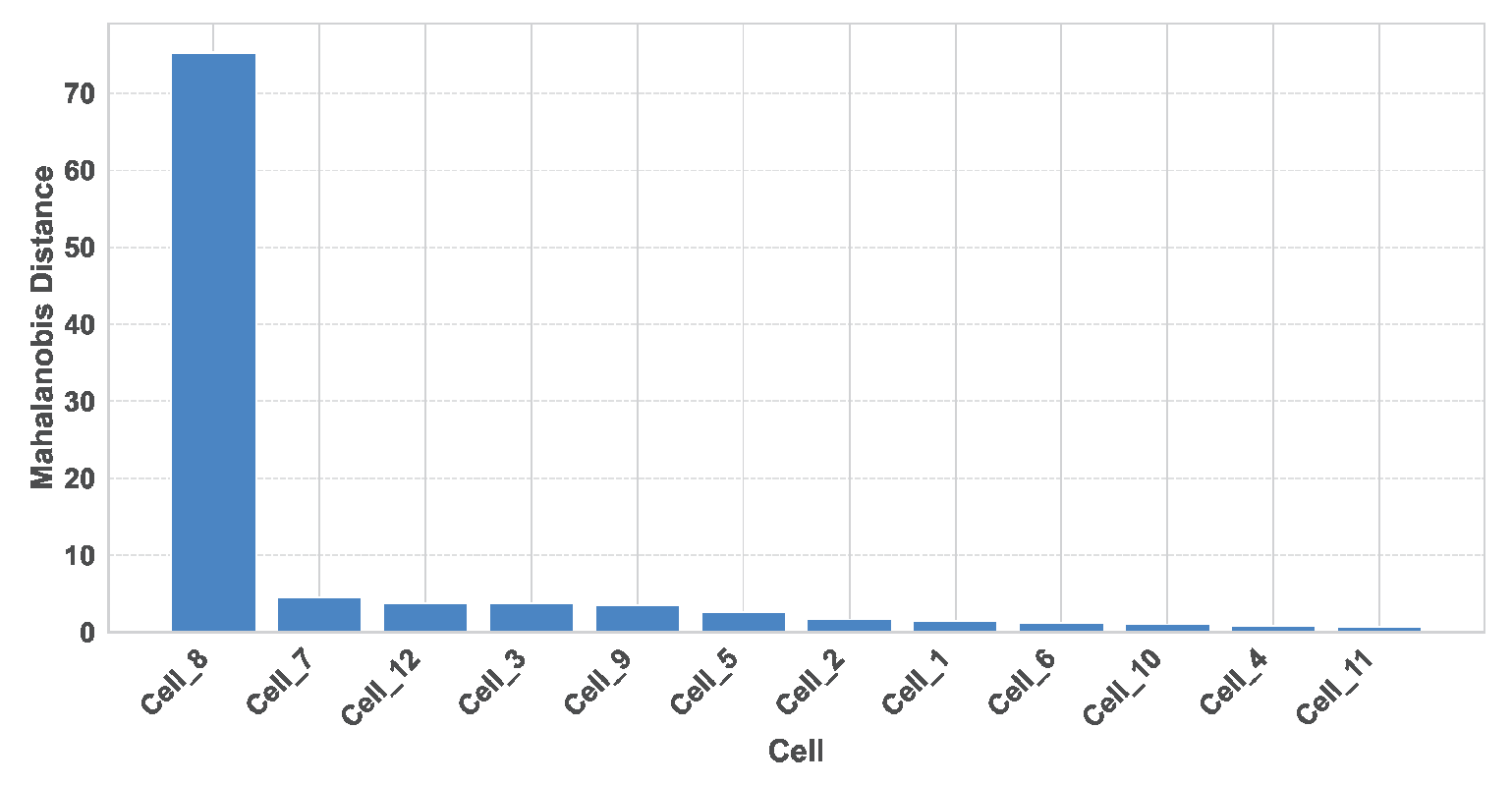 Within this site, cell Cell_8 stands out with the highest MD score, signaling a significant anomaly localized to this network element (