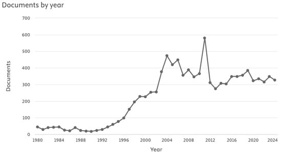 Annual distribution of journal articles published by year (retrieved from Scopus).