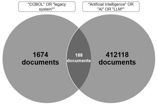For the purpose of this study, the literature search was conducted on March 4th 2025, using the following combination of keywords in the Title, Abstract, and Keywords fields: (“COBOL” OR “legacy system*”) AND (“Artificial Intelligence” OR “AI” OR “LLM*” OR “Agile”).