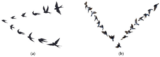 - Fly in a V-shape flock: This method allows swallows to cover the greatest possible distance by taking advantage of the total air flow formed by the entire flock, thus reducing the effort expended during flight. Figure 3 shows the V-shaped formation during flight. This means that when each bird flaps its wings in the air, it generates energy that helps it fly and also helps the bird following it, which enables all the birds in the flock to cooperate in the flight process.