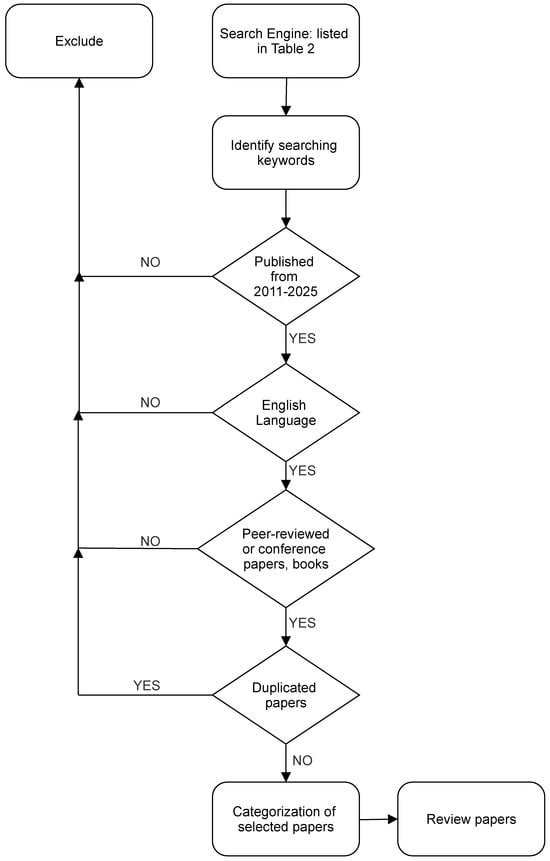 - Only articles published between 2011 and 2025 were selected to highlight the most recent trends in the application of AI in computer science and cybersecurity, except Section 3, which refers to developments dating back to the early 1940s to provide historical context on the origins of artificial intelligence.