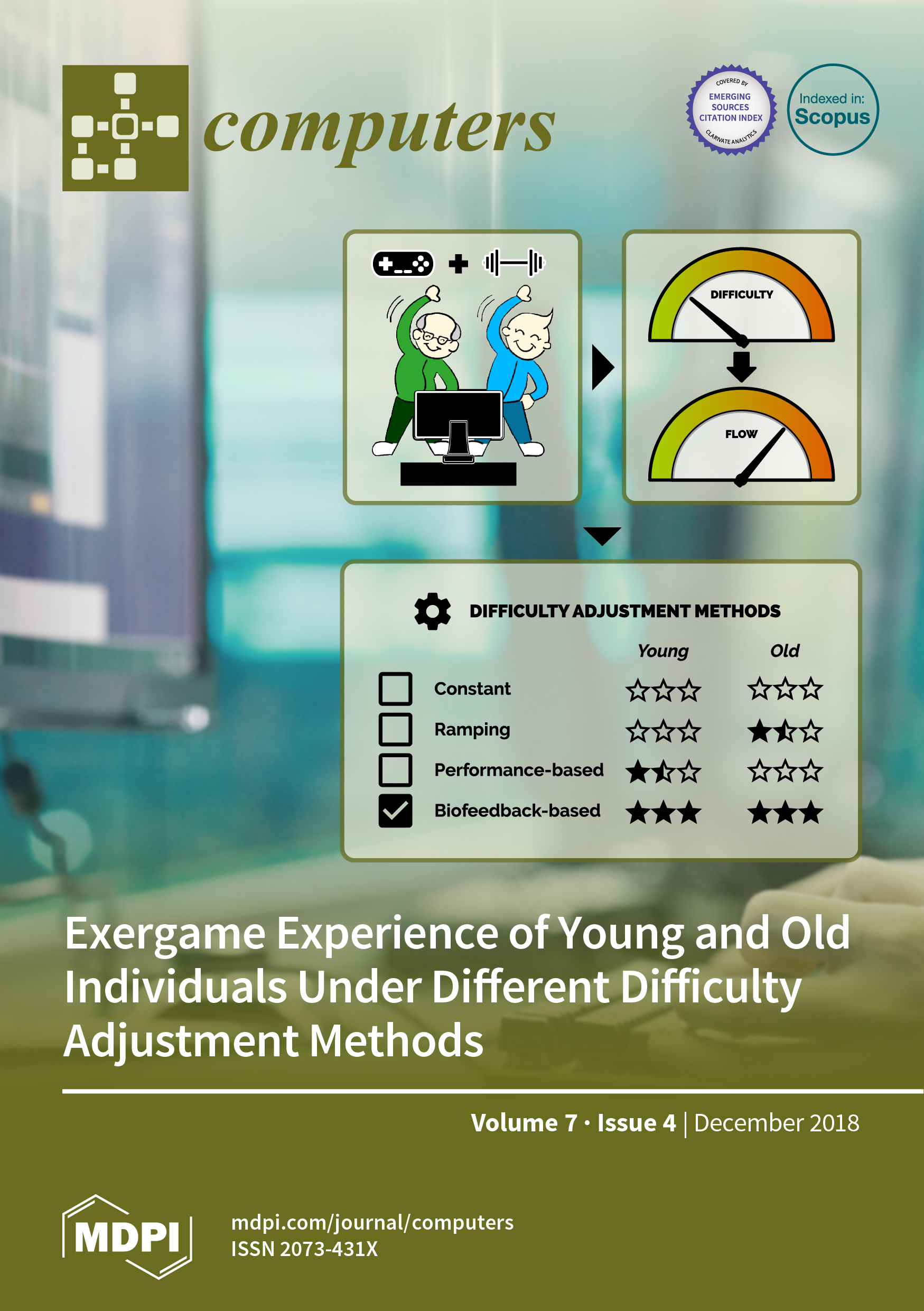 Cover Story: In this work, we compare the exergaming experience of young and old individuals under four difficulty adjustment methods. Studies frequently use exergames to improve individuals’ physical functions and reduce the likelihood of noncommunicable diseases. While task difficulty optimization is crucial to the exergame design, research has consistently overlooked the effects of age-related factors on the preferred difficulty adjustment methods. We compared the exergaming experience of young and old individuals under constant, ramping, performance-based, and biofeedback-based difficulty adjustments. Our results correlate well with previous work and support the role of dynamic difficulty adjustments. Further investigation revealed that old individuals are also likely to experience flow under ramping difficulty adjustments, whereas performance-based adjustments were only feasible for young individuals. View Paper here.